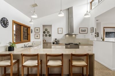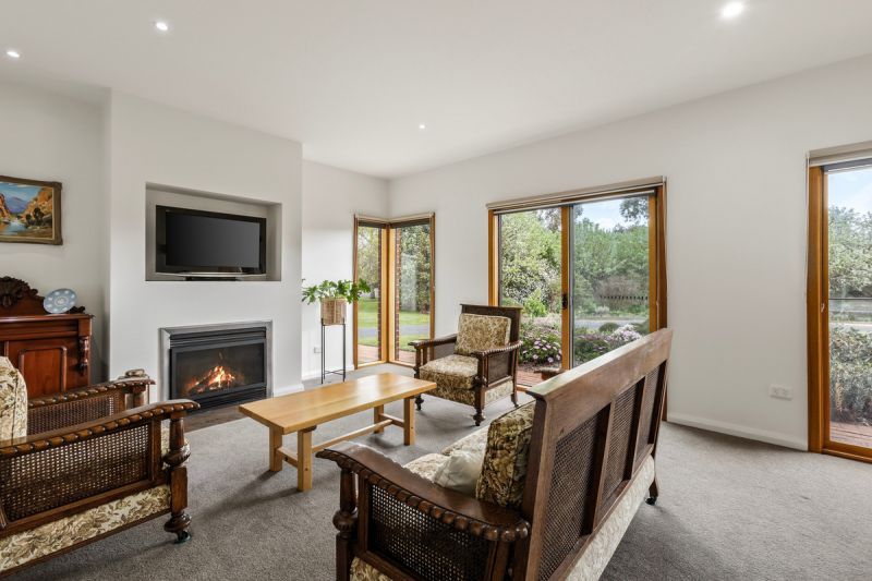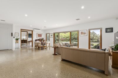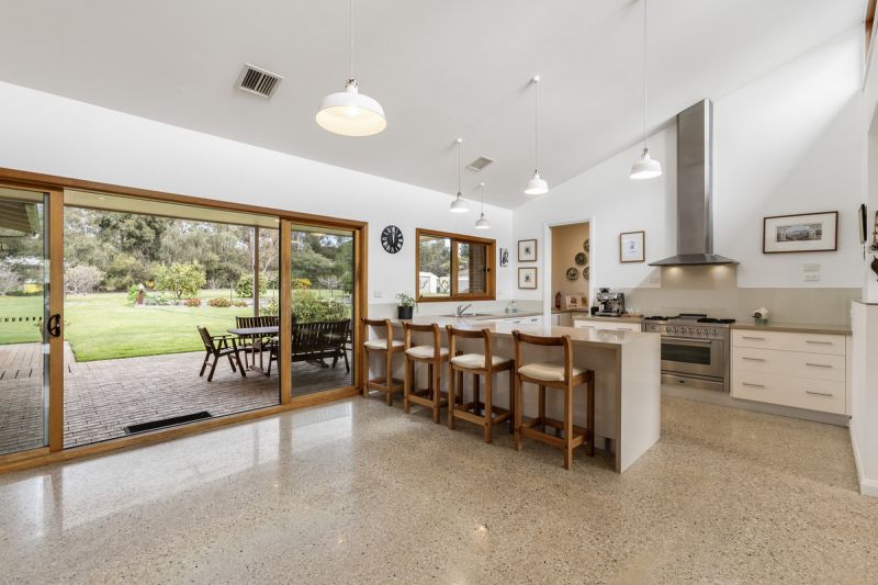 Flowing seamlessly from the kitchen is a relaxed sitting area that opens through wide doors to the undercover outdoor entertaining zone—an ideal setting for long summer lunches, candlelit dinners, and year-round celebrations surrounded by the sights and sounds of nature.