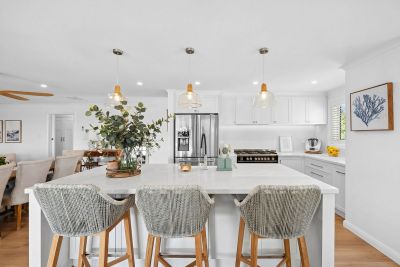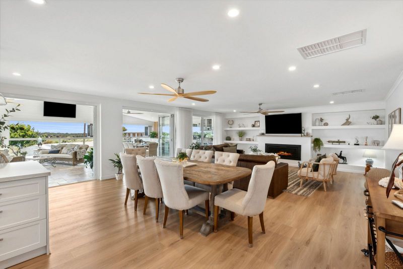 Styled with a timeless neutral colour palette, the home features light-toned walls, elegant Nordic oak floors, and coordinated lighting throughout. Plantation shutters add both elegance and privacy, enhancing the home's classic yet contemporary appeal.