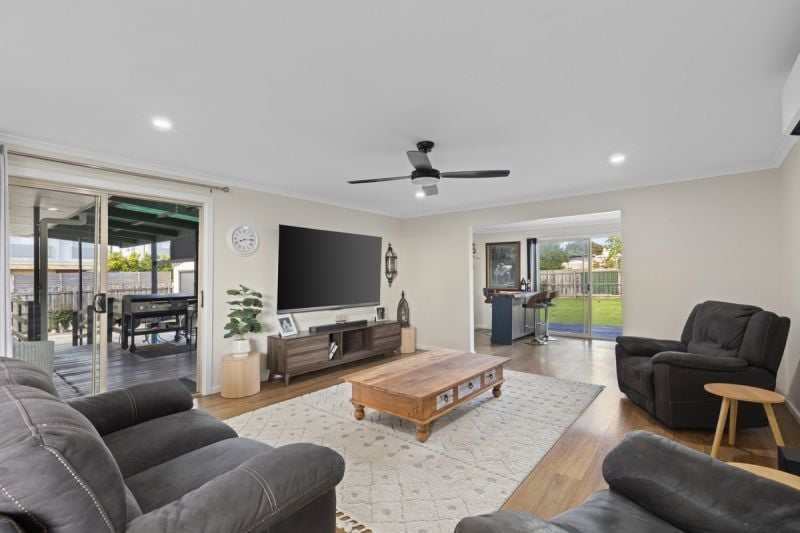 The main lounge exudes warmth and charm, complete with a classic fireplace for cosy winter nights. A thoughtful renovation has added a stunning new extension to the home, creating a beautiful second living area filled with natural light. This inviting space features air-conditioned comfort and opens to a covered alfresco zone — the perfect spot to enjoy your morning coffee, summer barbecues or lazy Sunday afternoons outdoors.
