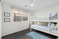 This luxurious 4-bedroom, 2-bathroom home blends refined style with everyday comfort — all within walking distance to shops, cafés, and the Portarlington ferry to Melbourne. Featuring an exquisite kitchen, designer bathrooms, dual walk-in robes to the principal suite, hydronic heating, and a stunning alfresco with a fully fenced outdoor spa, this property offers the perfect balance of sophistication and seaside convenience.