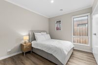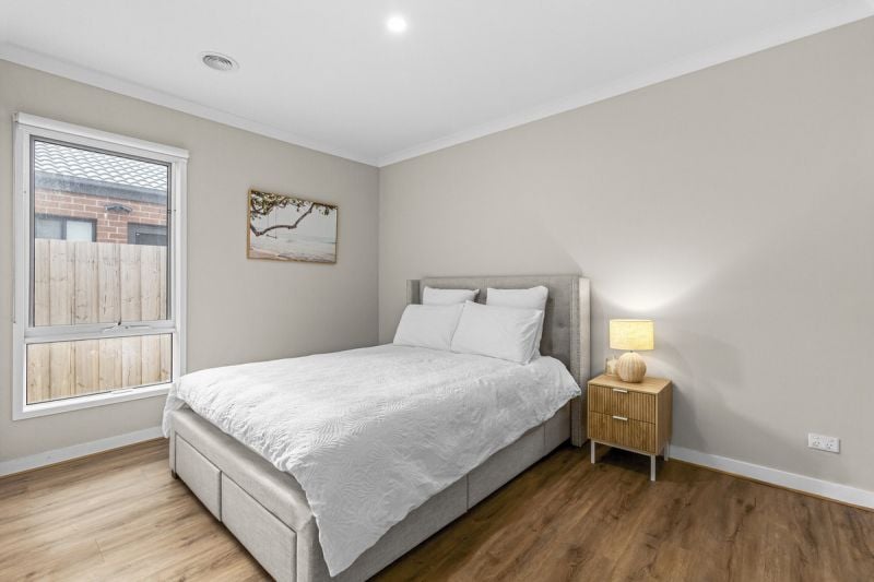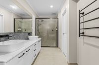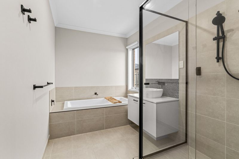 The remaining bedrooms all have built-in robes and share a well-appointed central bathroom with a relaxing bath, shower, and elegant finishes that echo the home's stylish design.