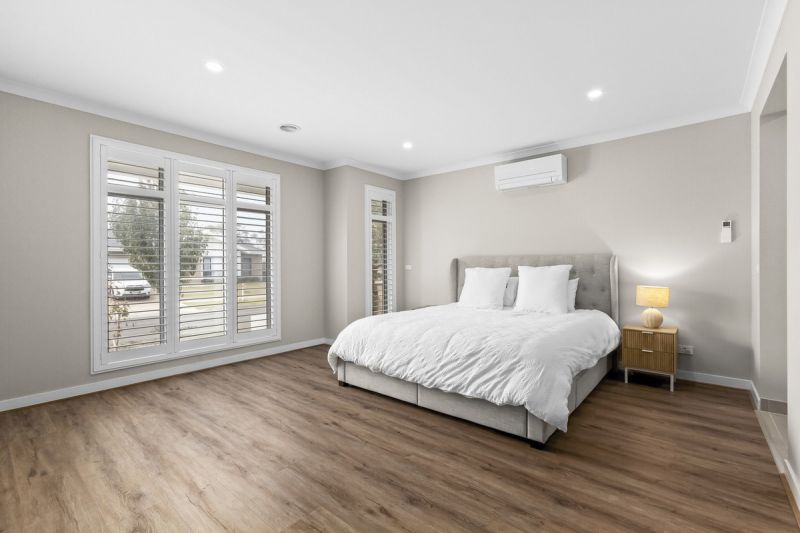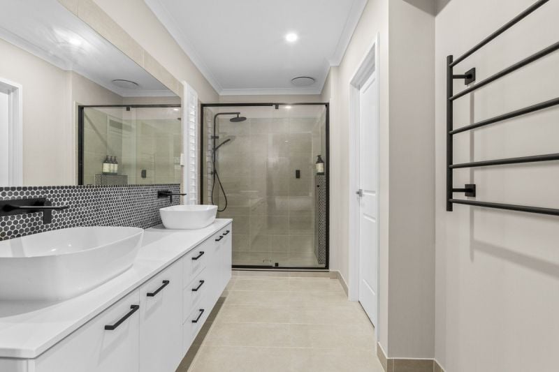All four bedrooms are generously sized, with the master suite offering a walk-in robe and a truly luxurious ensuite featuring a double vanity, beautiful splashback tiles, and a modern black showerhead—creating a serene retreat.