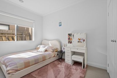 The kitchen is a true showpiece, combining sleek design with practical functionality. A generous island bench invites family gatherings and casual meals, while the expansive walk-in pantry provides an abundance of storage—perfect for those who love to cook and entertain.