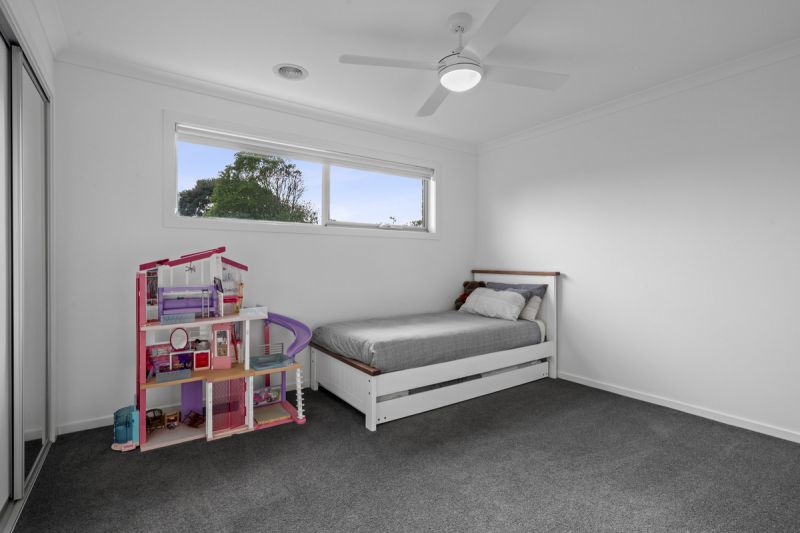 Offering four spacious bedrooms, the home is headlined by an expansive master retreat, complete with a striking feature panel wall, private balcony and ceiling fan—creating a peaceful sanctuary to unwind. The remaining bedrooms are generously sized and all include ceiling fans for year-round comfort.