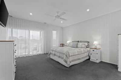 Upstairs, the heart of the home reveals an inviting open-plan kitchen, dining and living area where water views set the tone for relaxed coastal living. Whether entertaining guests or enjoying quiet family time, this light-filled space seamlessly blends comfort with style.