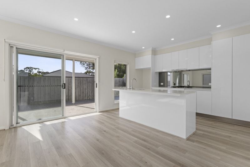The kitchen is contemporary and functional, featuring generous storage, quality appliances and a breakfast bench that works just as well for everyday meals as it does for entertaining. Sliding doors extend the living space outdoors to a covered alfresco and private courtyard, creating a relaxed setting for morning coffee or evening wind-down.
